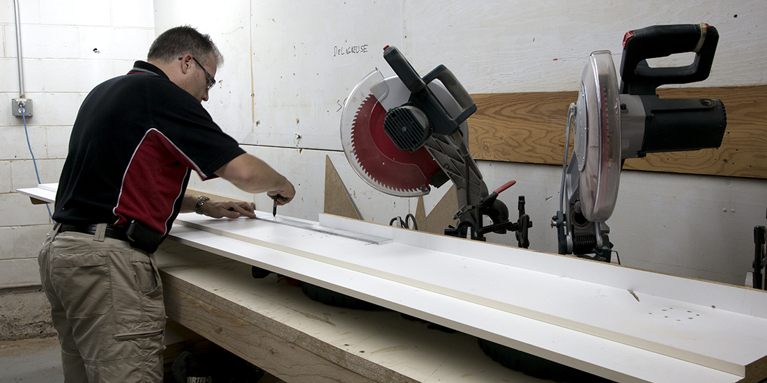 Placer la règle à l’aide des boulons dans les trous percés auparavant